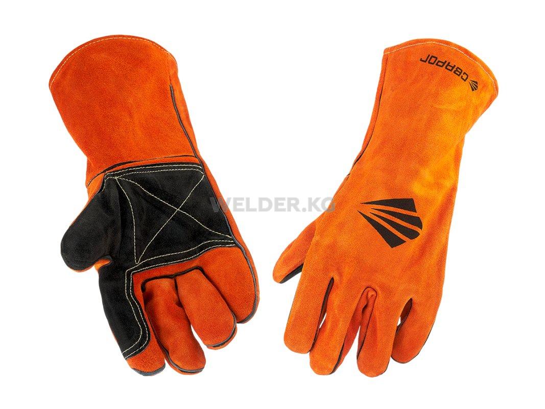 Перчатки с дополнительной защитой ладони при воздействии высоких температур. Изготовлены из спилка класса А, прошиты кевларовой нитью. Сфера использования: сварочные и иные работы, связанные с высокими истирающими нагрузками.