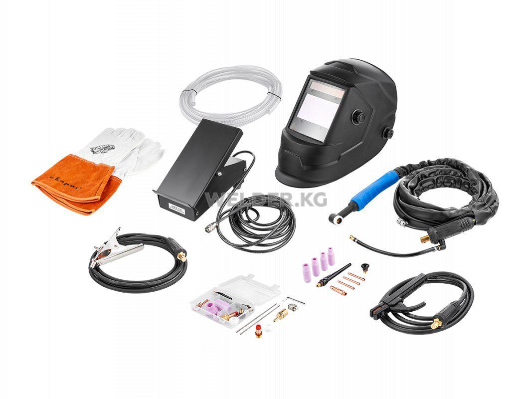 - Уникальная расширенная комплектация, включающая в себя маску Хамелеон PRO B40, педаль управления сварочным током, расширенный ЗИП для горелки, перчатки сварщика