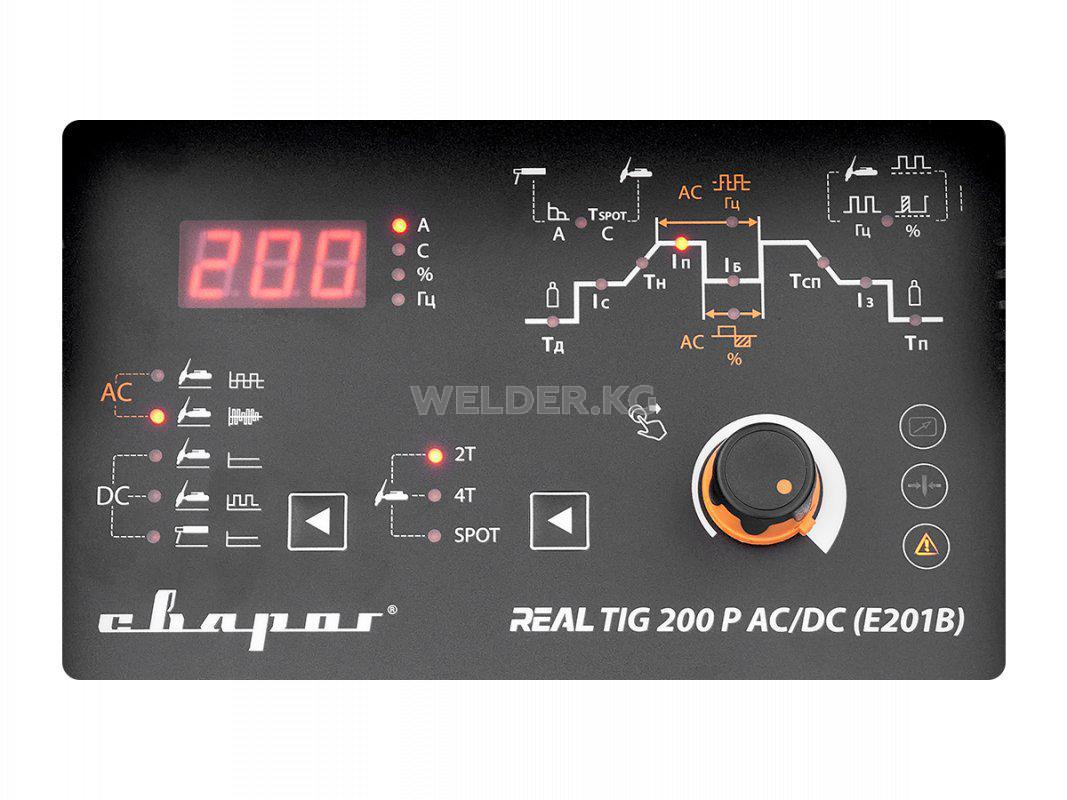 REAL TIG 200 P AC/DC BLACK (E201B) — инверторный сварочный аппарат с режимом аргонодуговой сварки (TIG) на постоянном (DC) и переменном токе (AC), ручной дуговой сварки (MMA) на постоянном (DC) токе