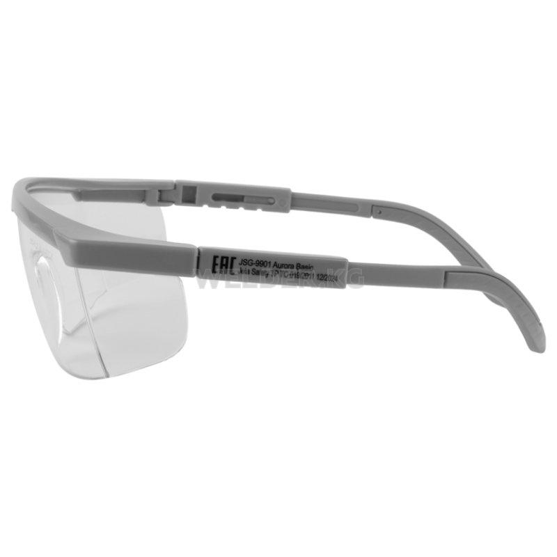 JETA SAFETY JSG-9901 Aurora Basic — легкие универсальные очки из поликарбоната с панорамным защитным стеклом и сверхтвердым покрытием Sapphire против царапин. Оснащены удобным механизмом регулировки дужек. Очки предназначены для защиты глаз спереди, сверху и по бокам от механических воздействий, абразивов и УФ-излучения.