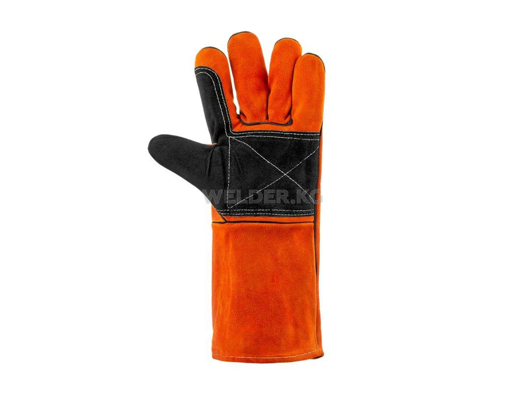 Перчатки с дополнительной защитой ладони при воздействии высоких температур. Изготовлены из спилка класса А, прошиты кевларовой нитью. Сфера использования: сварочные и иные работы, связанные с высокими истирающими нагрузками.
