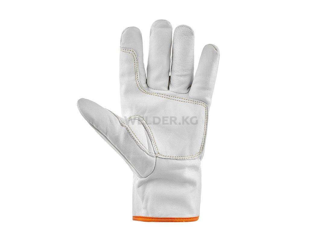 Рабочие перчатки из натуральной кожи имеют фиксатор на манжете, что обеспечивает лучшую посадку на руке. Ладонь дополнительно укреплена износостойкой нашивкой. Сфера использования: для работ, связанных с высокими истирающими, механическими нагрузками.